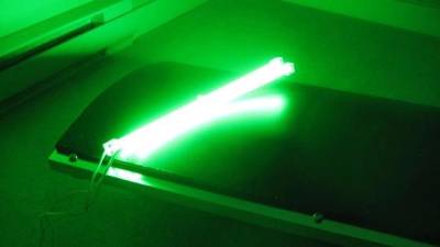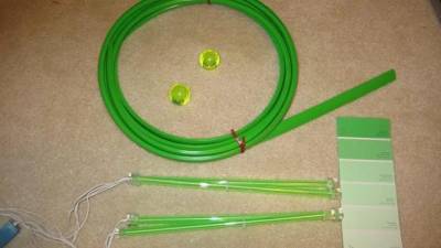 Cold Cathodes are really cheap…a pair like in the picture below run about $10 and they come in various colours. Here is what the green cold cathode I will be using looks like lit if you are curious: