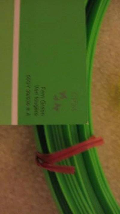 And finally just a quick shot of the T-molding (Galaxian Green). Also in the picture are two of the balltops. I will be getting another pair with leds and hollow shafts for the JLWs which DHL tracking says will be delivered tomorrow. Also in the bottom picture is the colour I will be using for the bottom front of the cabinet, called Fern Green: