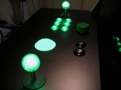 Here is the CP with new Player 1 /2 buttons lit with the lights in the room still on. The Trackball is RGB but I just set it to Green for this pic: